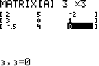 - Hit 2nd QUIT to return to the main screen. The matrix you created is now stored as [A] and you can refer to it as such.